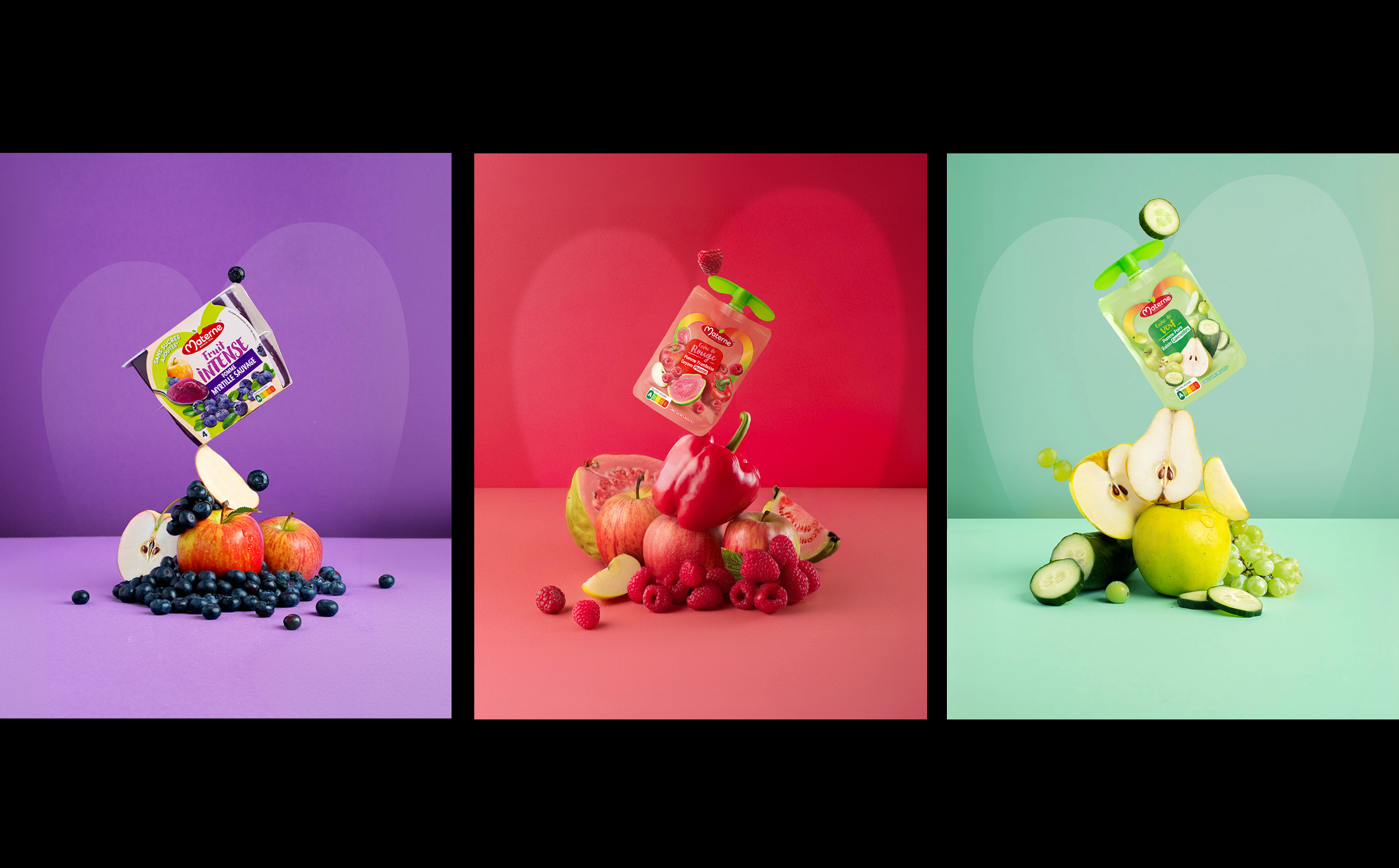- Direction artistique et shooting photo des produits avec des compositions fruitées pou